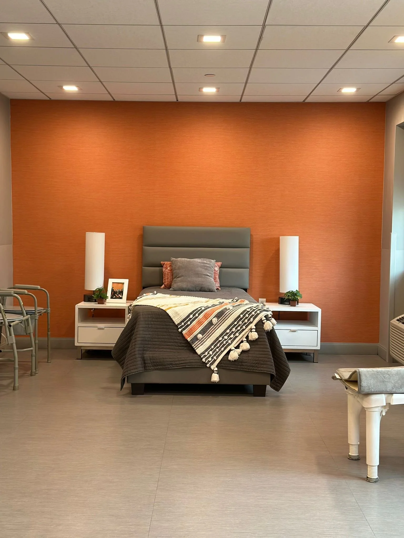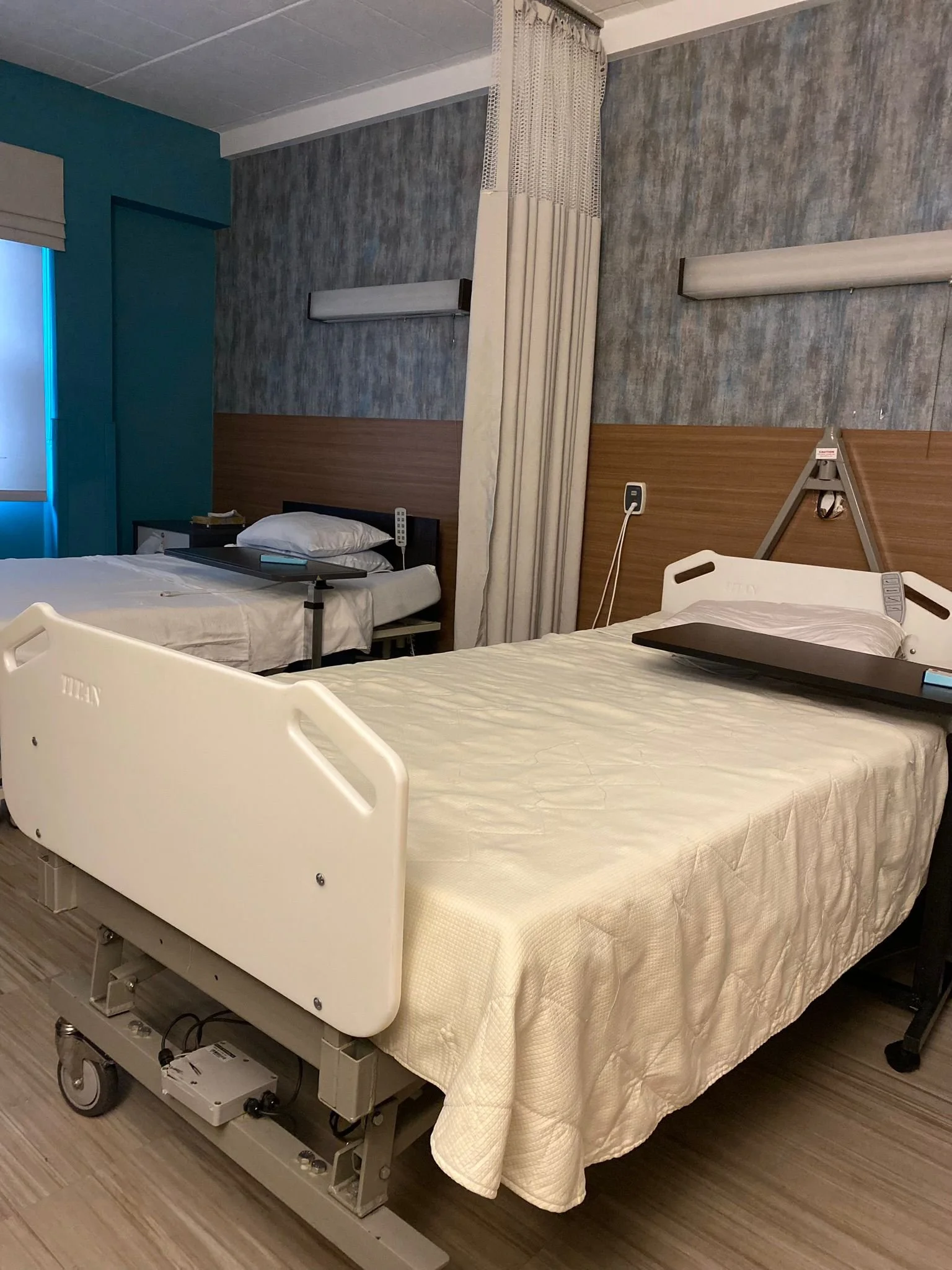 Newly renovated patient rooms, designed for comfort, accessibility, and a soothing atmosphere to support healing.