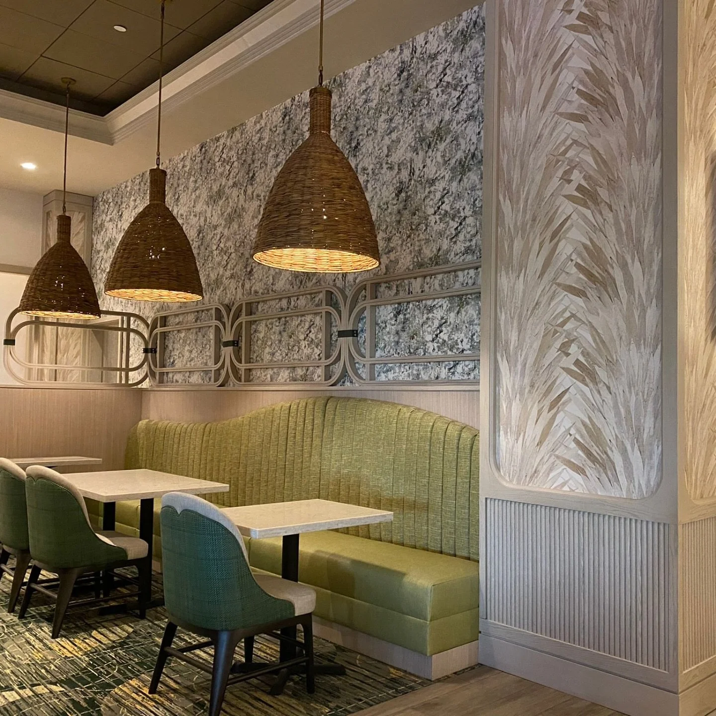 Updated dining rooms, blending functionality with warm and uplifting aesthetics to encourage community and connection.